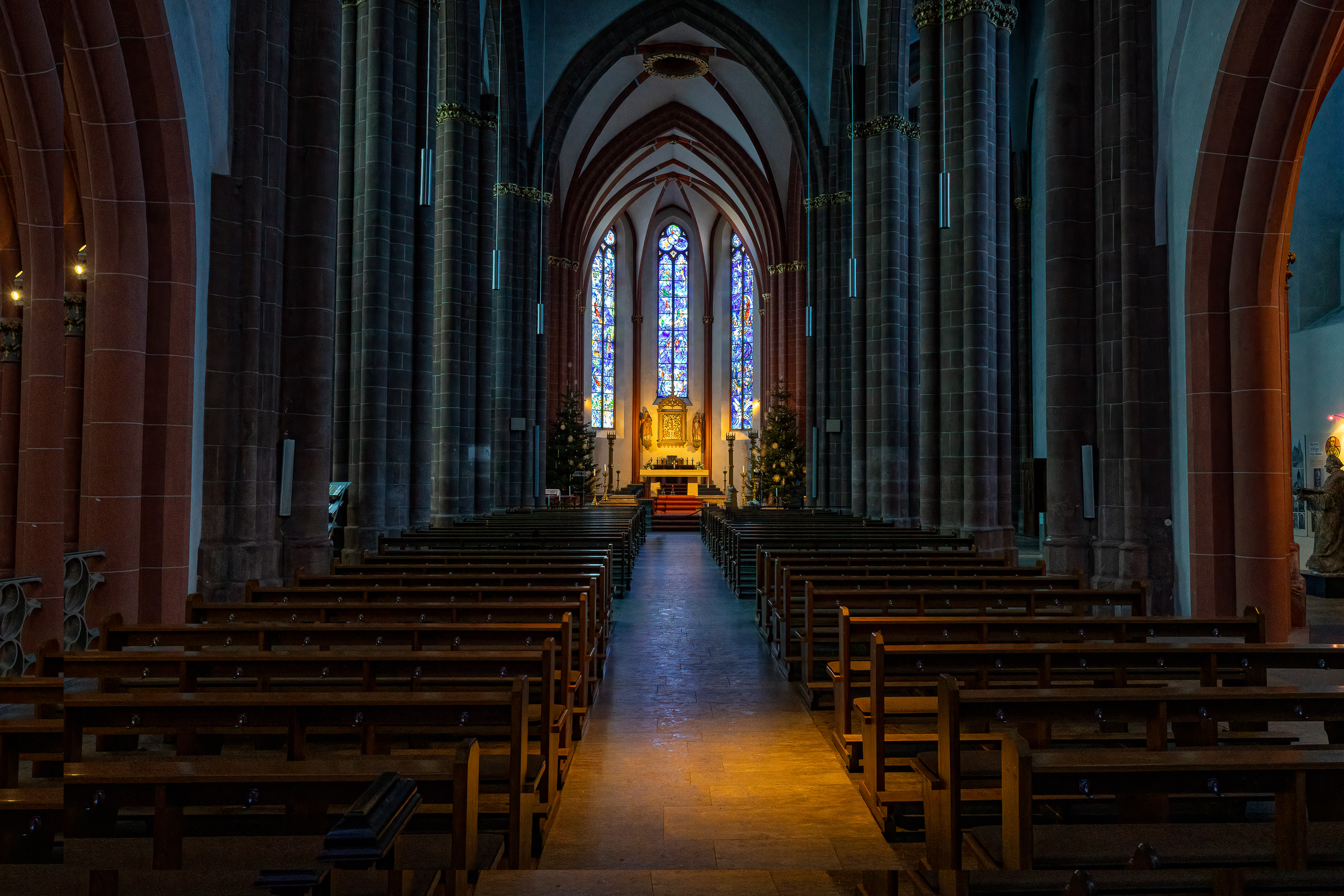 Die Kirche selbst gehört zu den ältesten Sakralbauten der Stadt Mainz. Ihr gotischer Innenraum bildet einen spannenden Kontrast zu den modernen Fenstern. Gerade dieses Zusammenspiel von historischer Architektur und moderner Kunst macht den Ort zu einem besonderen Motiv für die Architekturfotografie.