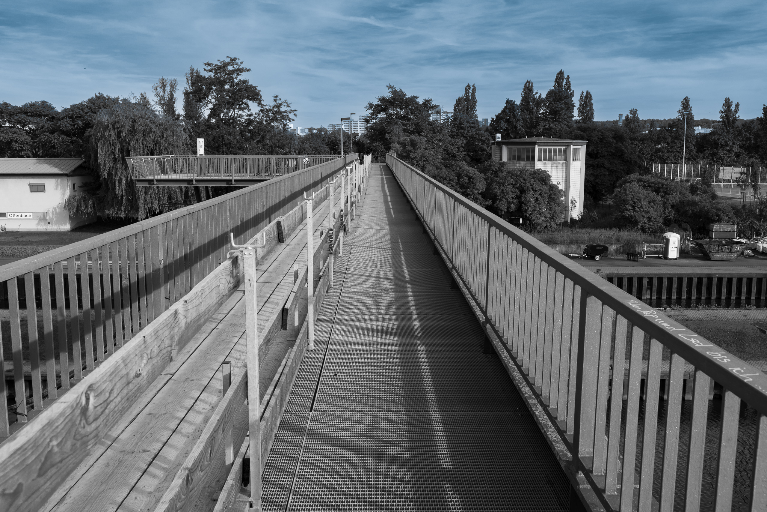 Diese Fotoserie entstand im Juni 2022 während eines Fotowalks, der uns vom Offenbacher Mainufer in Richtung Frankfurt und zur Europäischen Zentralbank führte. Auf diesem Weg rückten die Brücken entlang des Mains in den Mittelpunkt unserer fotografischen Aufmerksamkeit.