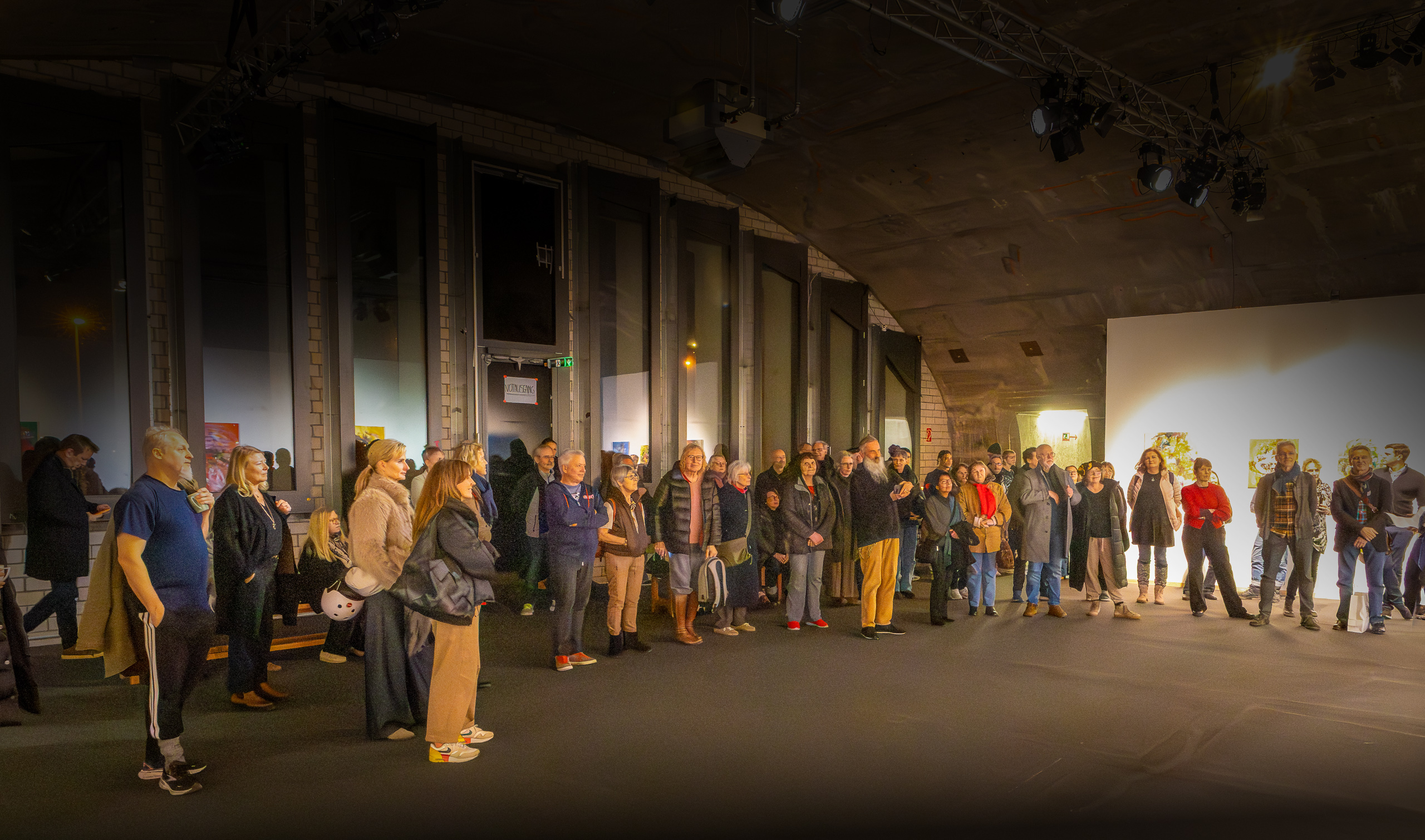 Während draußen die Dunkelheit des Winters den Raum umgab, entwickelten die Gemälde im Inneren eine eigene Leuchtkraft. Die Farben wirkten beinahe wie Lichtquellen im Raum. Sie setzten Akzente, schufen Energie und zogen den Blick immer wieder neu an. In dieser Umgebung wurde deutlich, wie stark Farben eine Stimmung verändern können – sie brachten Wärme, Bewegung und Leben in die Räume.