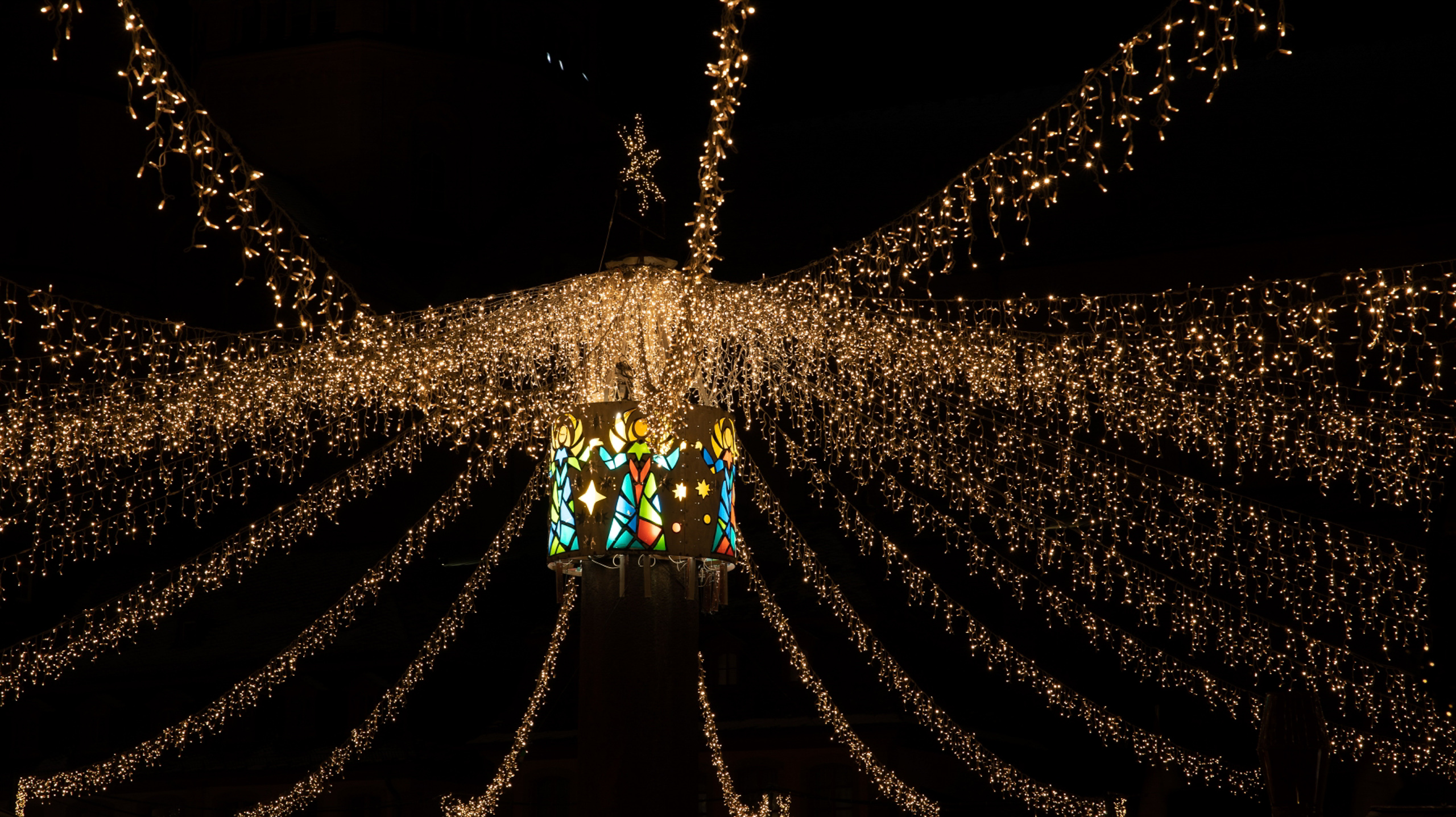 Gerade in den Abendstunden entsteht eine besondere Stimmung. Die vielen Lichter der Marktstände, der große Weihnachtsbaum und die festliche Beleuchtung tauchen den Platz in ein warmes Licht. Zwischen den Buden mit Kunsthandwerk, weihnachtlichen Dekorationen und regionalen Spezialitäten bewegen sich Besucher durch die Gassen des Marktes.