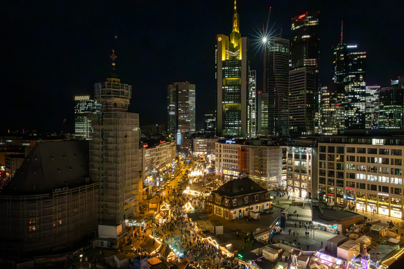 Frankfurt zeigt sich in der Adventszeit von einer besonders stimmungsvollen Seite. Wenn die Dunkelheit über die Stadt zieht, beginnen die Lichter des Weihnachtsmarktes am Römerberg zu leuchten und verwandeln die historische Altstadt in eine festliche Kulisse.