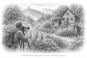 Der Verzicht auf Farbe lenkt den Blick auf das Wesentliche: Linien, Flächen, Texturen und die Wirkung von Licht und Schatten. Gerade im Taunus mit seiner abwechslungsreichen Landschaft, den Wäldern, Wegen und architektonischen Details bietet Schwarz-Weiß-Fotografie ideale Voraussetzungen, um Stimmungen und Strukturen sichtbar zu machen, die in Farbe oft in den Hintergrund treten.