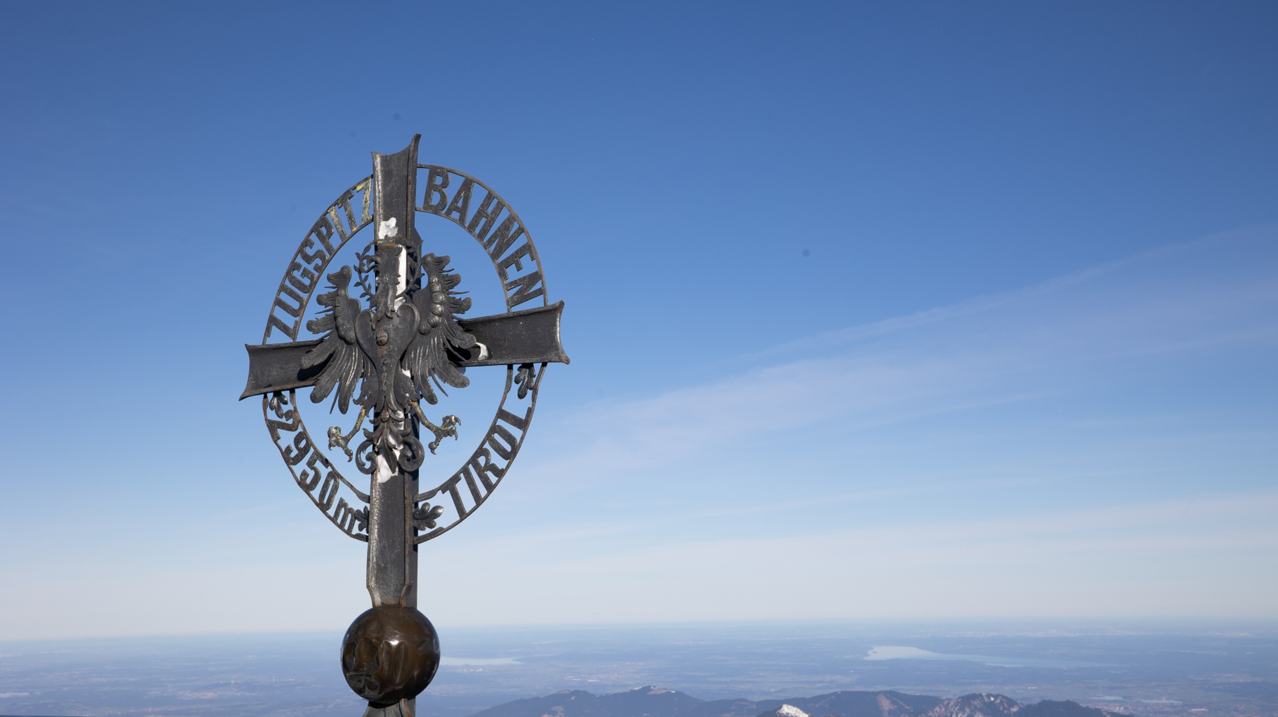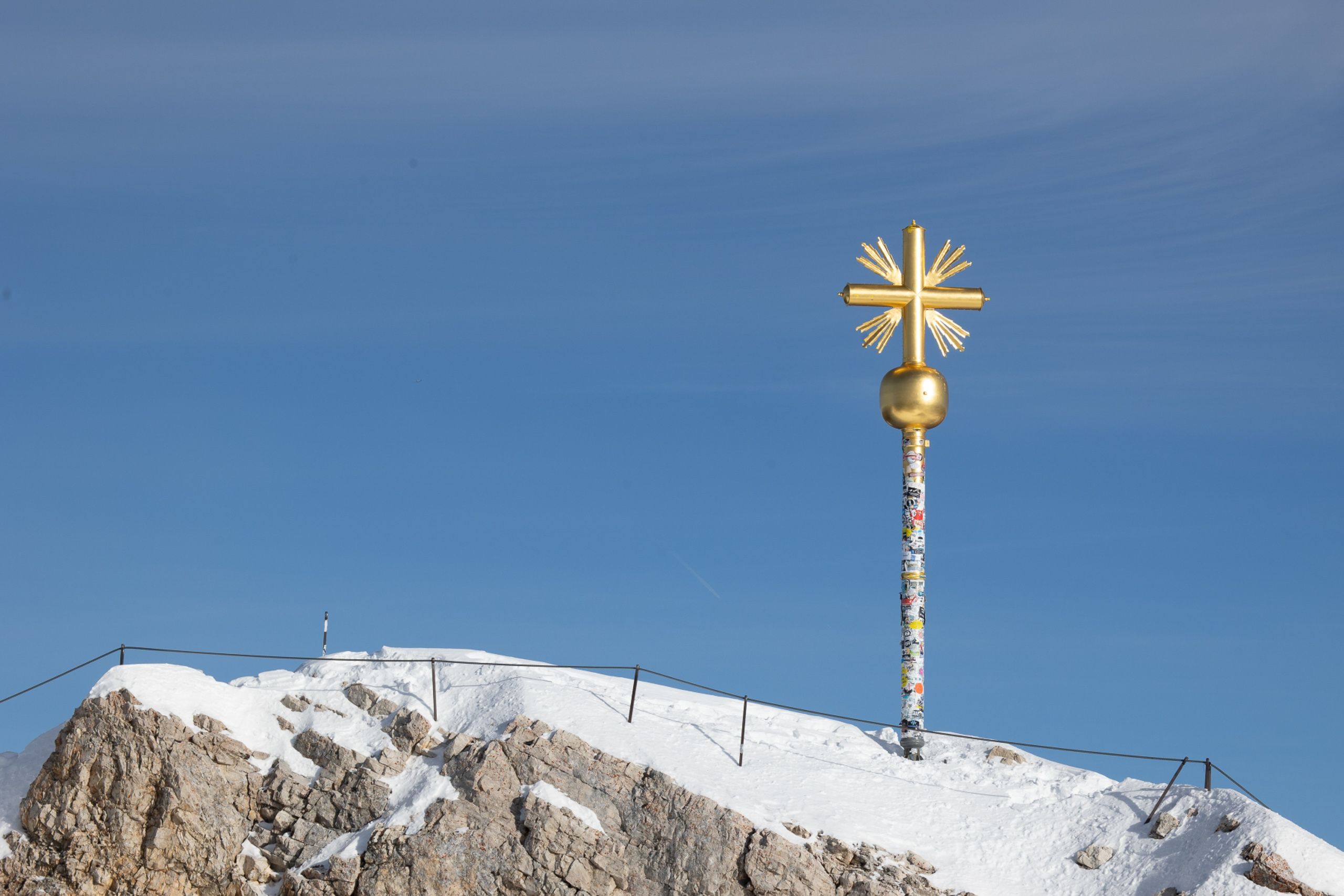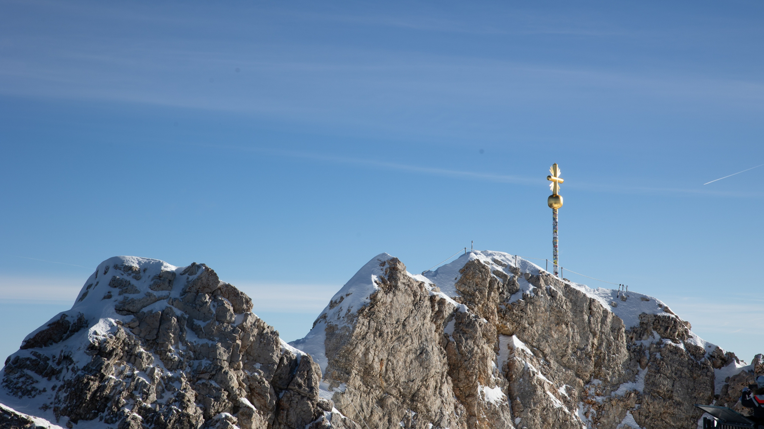 Zugspitze Dezember 2022 Gipfelkreuz auf der Zugspitze unter klarem Himmel